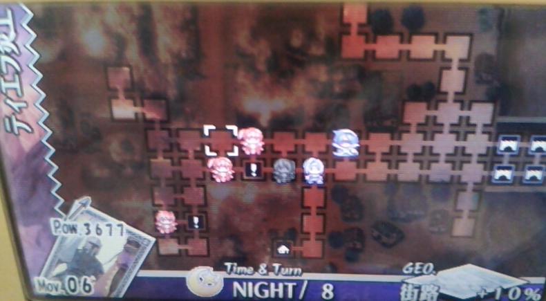 | 本日のBFは、 MAP1:目標地点まで行く。 MAP2:Fのレオン以外全て撃破する(レオンはプロテクト)。 MAP3:Nのパンドラ撃破。 MAP4:レオン撃破。 という流れですね。ヴァルキリーとナイトが入り乱れていますが、私には関係の無いことでしょう。 私で大事なことは夜に転移移動になることですね。▽ |