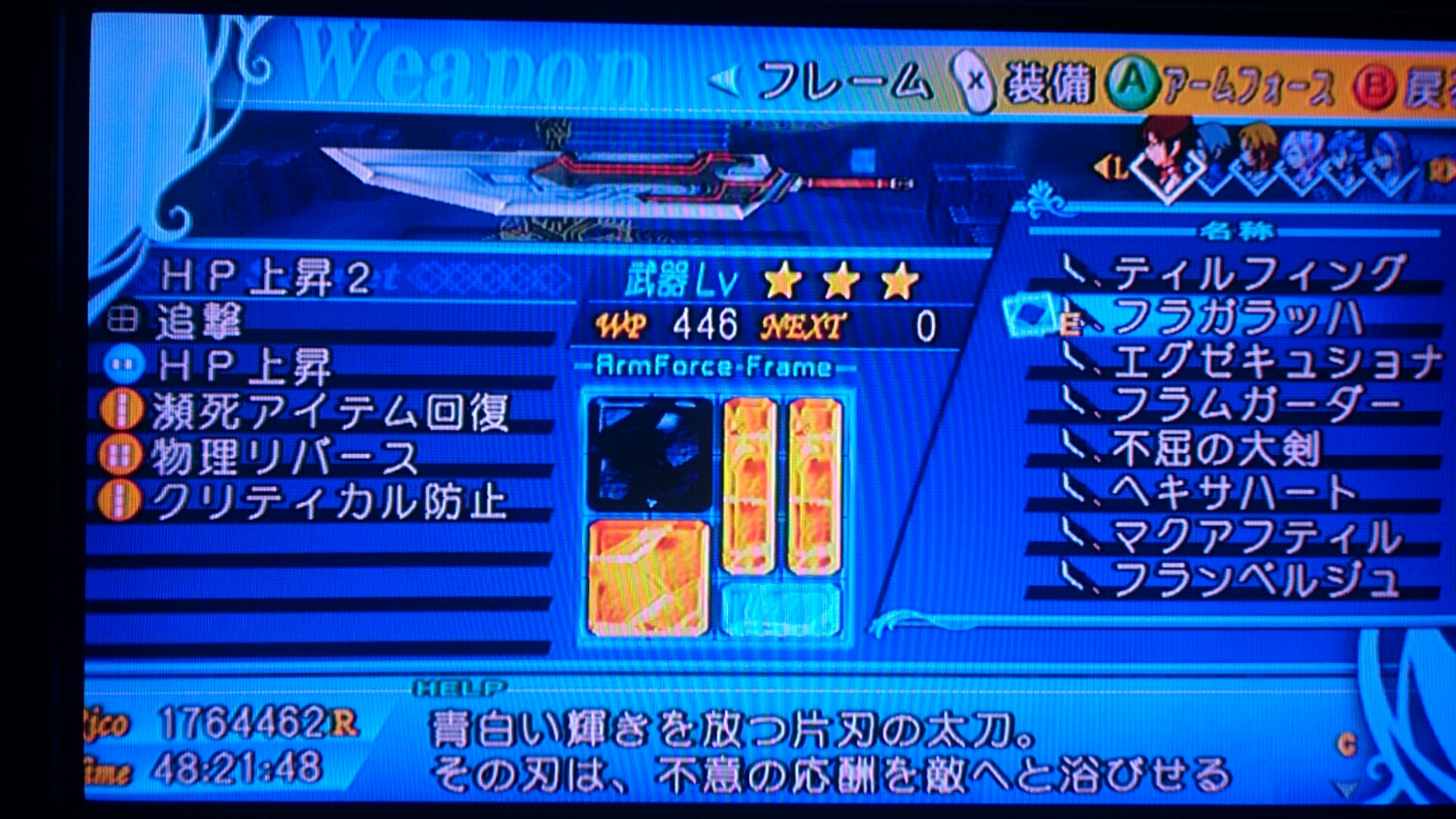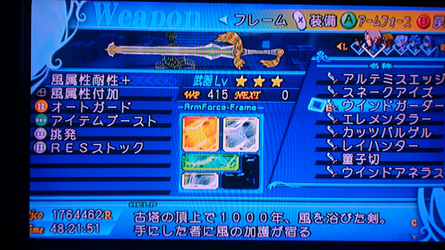 攻略サイトは初見では見ておらず、相対してから敵の使用技を斜め読みしたくらい。だから敵のアームフォースにこれがついてるとかはさっぱりわからないままやってました。