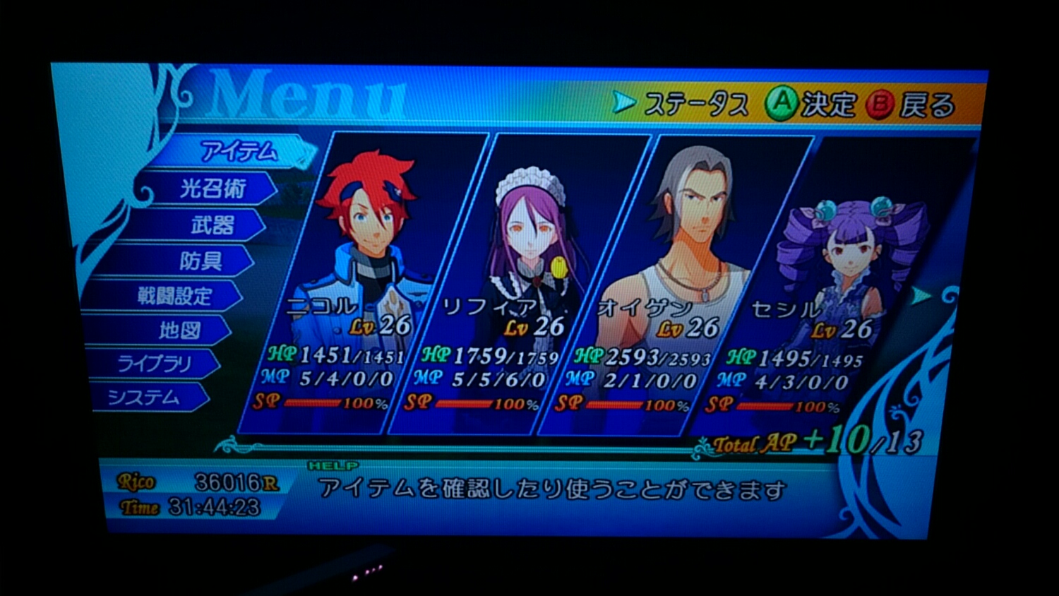 全員Lv.26の場合、オイゲンだけ上限APが5、他が4。そして回復APがニコルだけ4、他が3なのです。