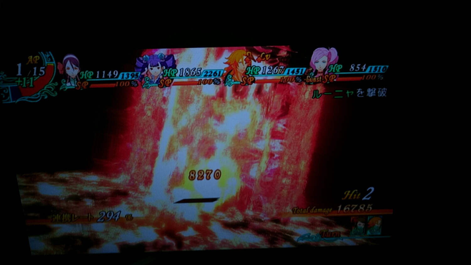 レイストーンありでLv.4の火の術をしちゃえばなんと16,000以上出せてルーニャを瀕死にまで持っていくことが可能。若干足りない部分はこのターンや前ターンでレスリーがなんとかしてくれる。たぶん。