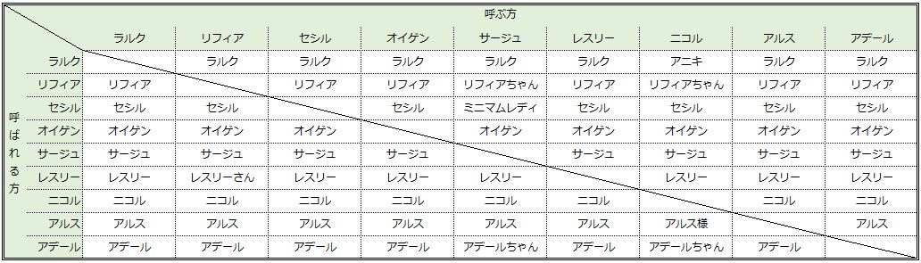 こそっと、術連携の時の名前呼び表を置いておきます。