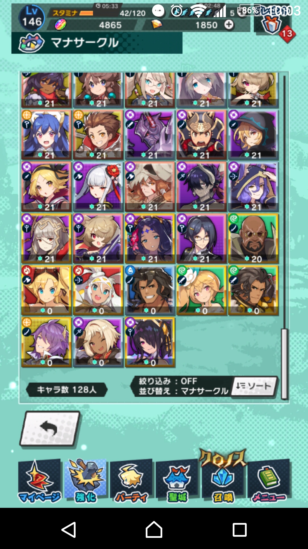そして何故か自然と凸するタケミカヅチさん、今まで一体もいなかったのに突然3体に増えたギルガメさん、真ゾディのために金剛を2個消費して完凸させたのに2匹降ってきたキューピッドさん、もう6体目なジャンヌさんなどなど、光はカオス具合極まれり。そのうちライガも勝手に凸りそう。