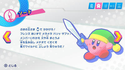 コピー能力も、毎度お馴染み、メニュー画面を押せば能力の説明文が見られます。