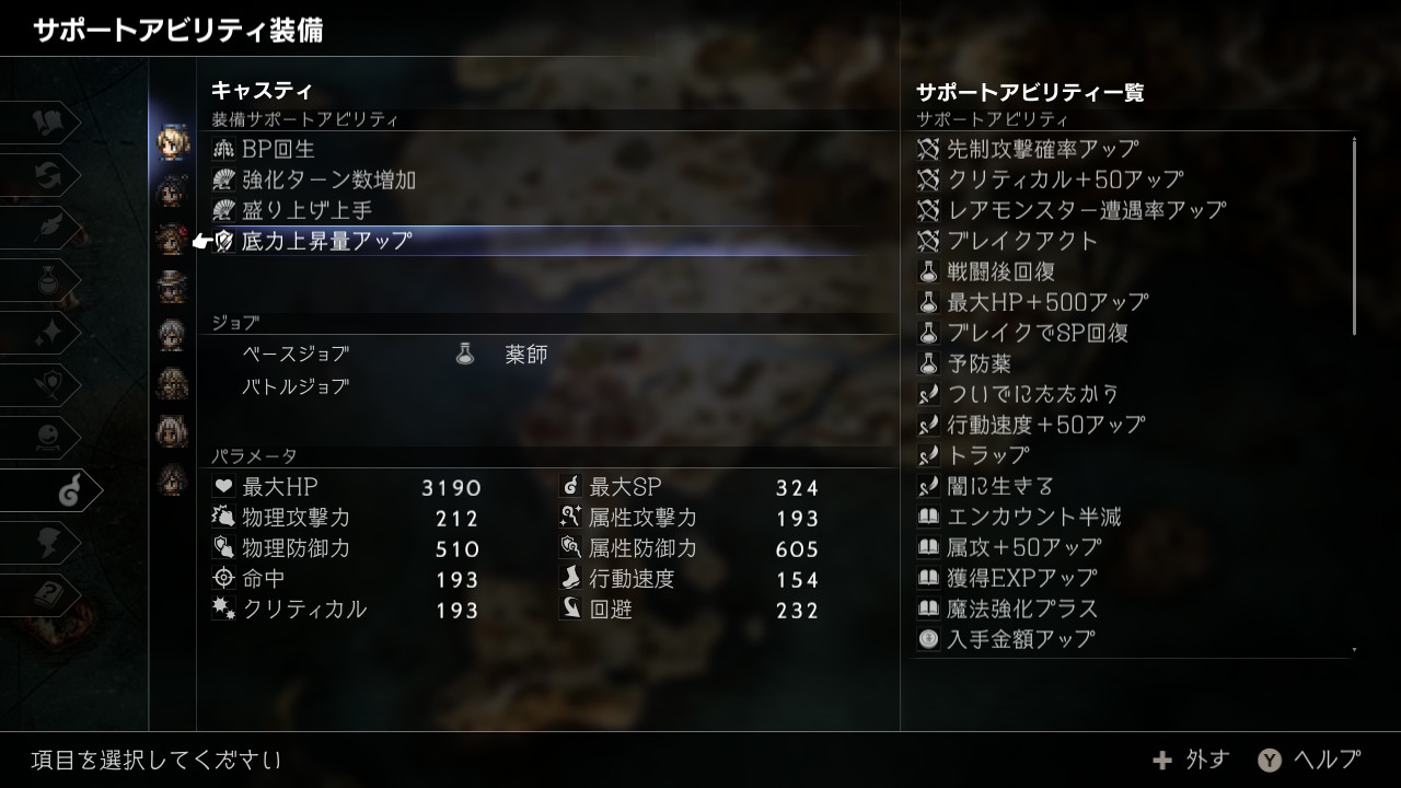 上三つは必須レベルだが、残りはプレイスタイルに応じてサポートアビリティをつけたいところ。