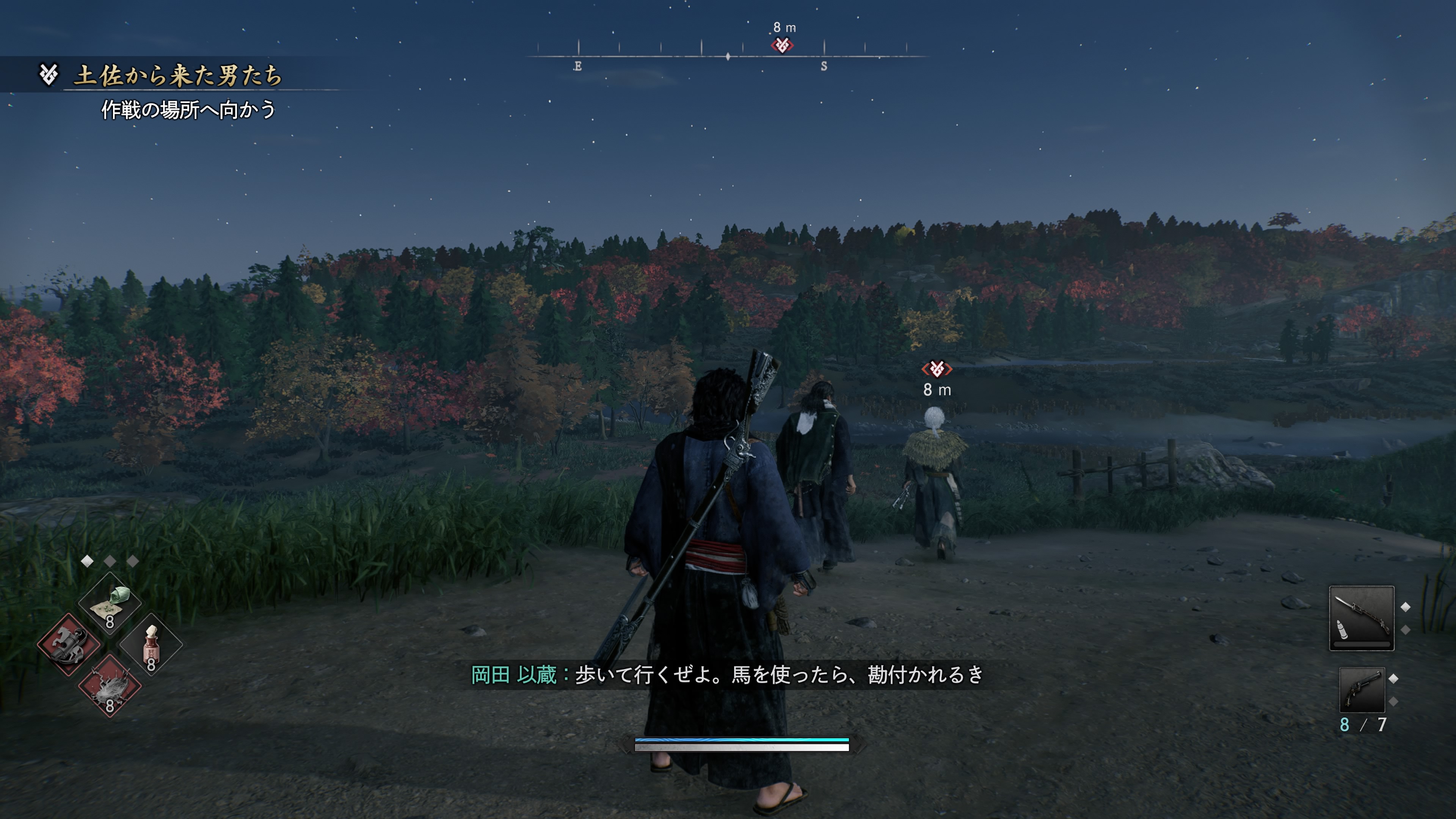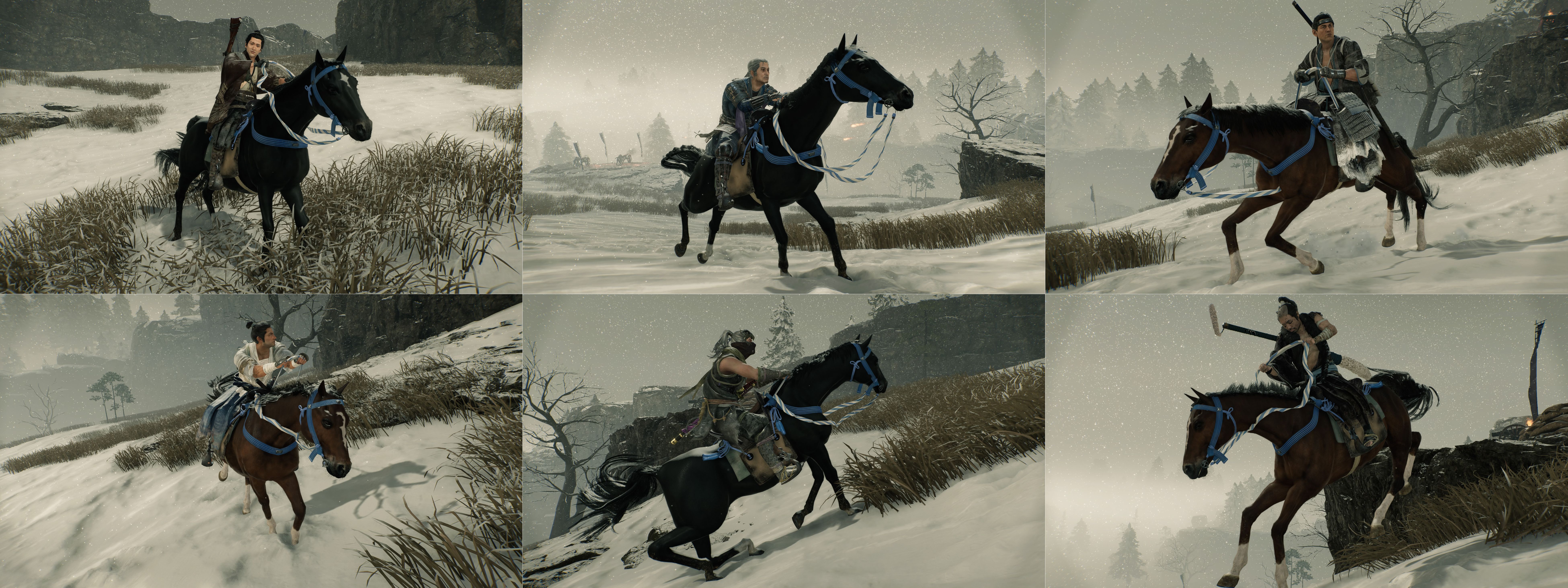 ミッション「鳥羽・伏見の戦い(倒幕)」では、開幕から馬に乗っているのが判る通り、共に戦う徒党も馬に乗せることが出来る。