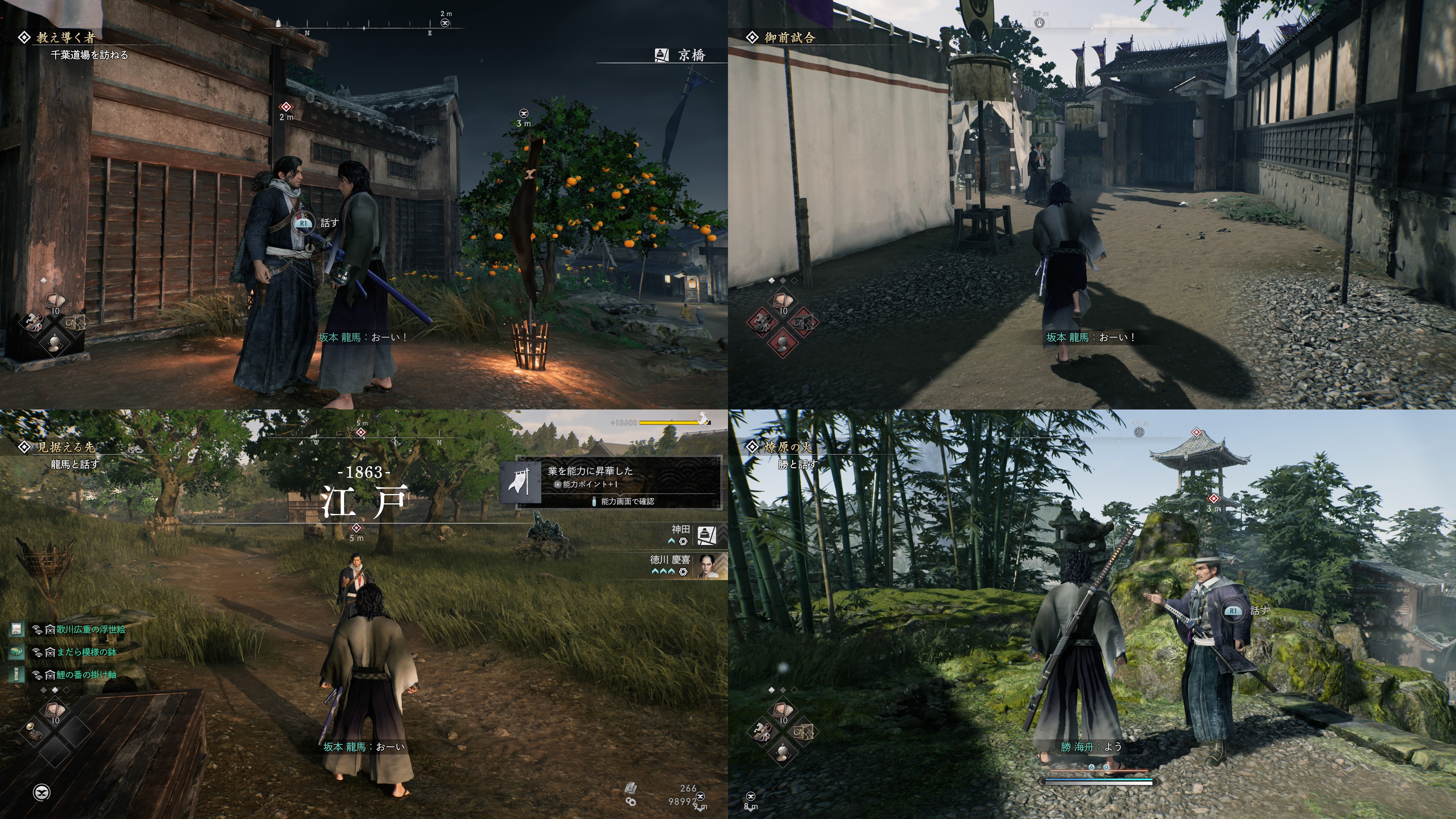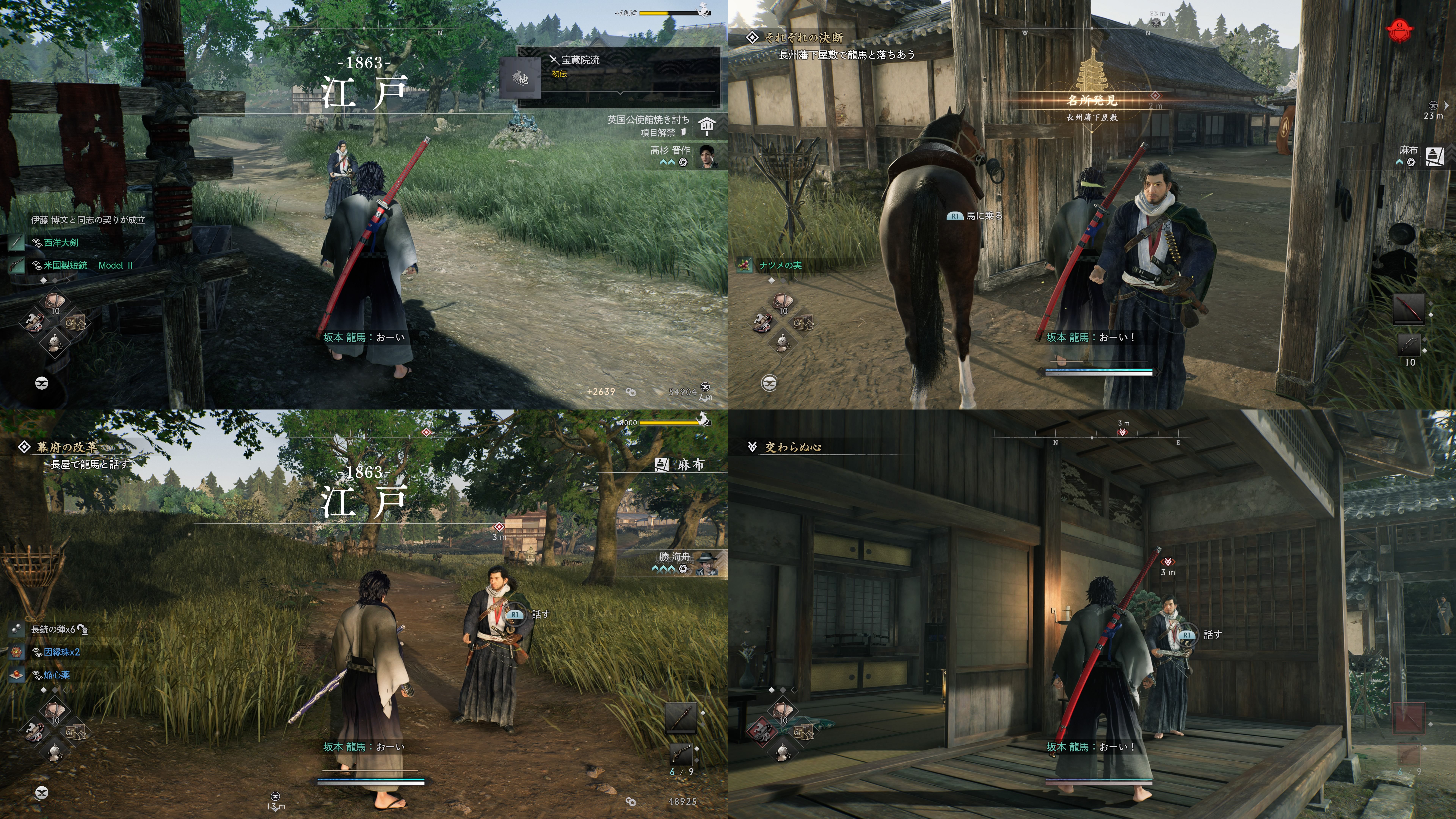 一部の説明で書いた通り龍馬に話しかける必要のあるシーンはかなり多いものの、実際に声を向こうから掛けてくれる回数は思ったより少なかった。因縁ミッションを含んでもこれである。