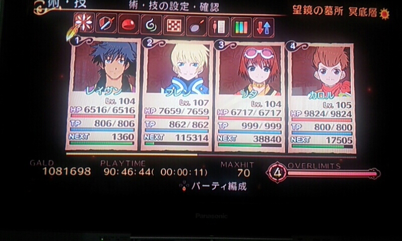 | レイヴン Lv.104 | フレン Lv.107 | リタ Lv.104 | カロル Lv.105 |